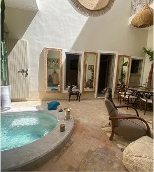 Entièrement restauré en 2022, le Riad Bacha Beldi allie confort moderne et esprit marocain. Il dispose de 4 chambres réparties sur deux étages (jusqu’à 8 personnes), d’un patio lumineux avec piscine chauffée, et d’une terrasse ensoleillée idéale pour savourer le petit-déjeuner ou admirer les couchers de soleil sur les toits de la Médina.